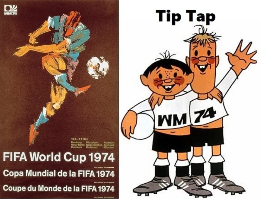 Tip portaba las letras WM (Weltmeisterschaft, Copa Mundial en alemán) y Tap el número 74. El alegre dúo ofreció una imagen de unidad y amistad que se retomó 32 años después.